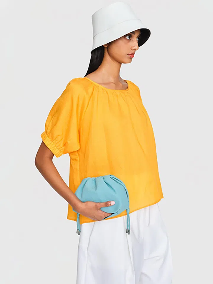 来自本地品牌In Good Company的柑橘色上衣(价格 $139),采用轻薄苎麻面料制成。其宽松活泼的剪裁不仅让你穿着舒适,还能起到修饰身材的作用。