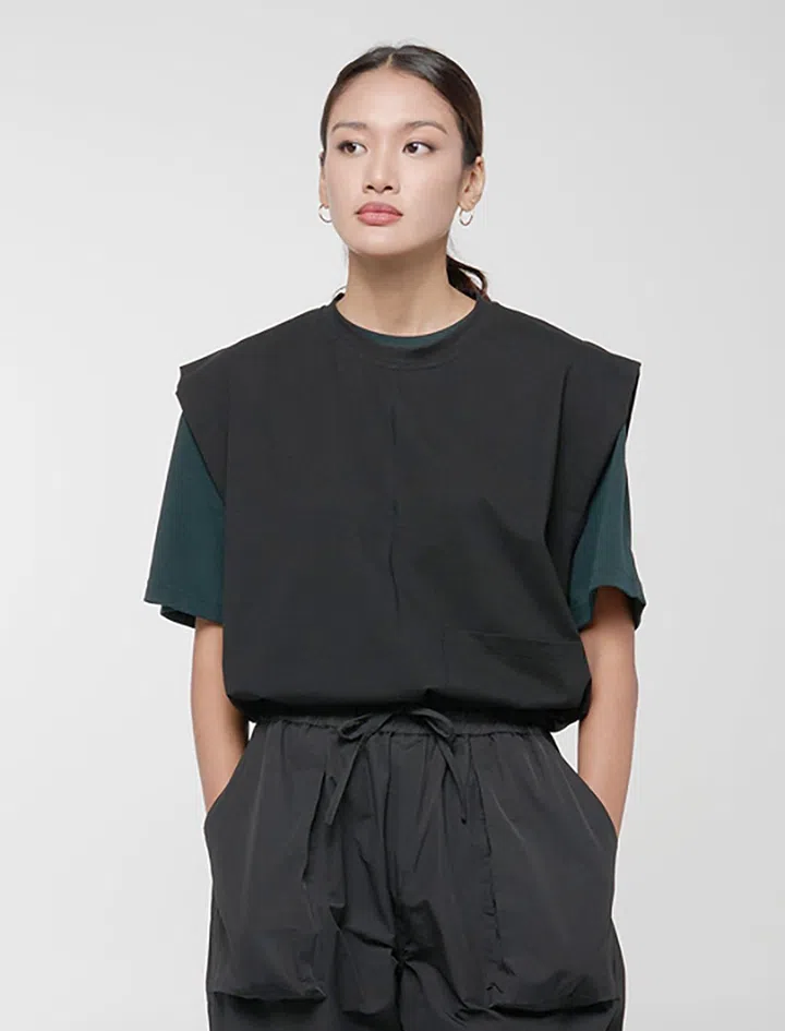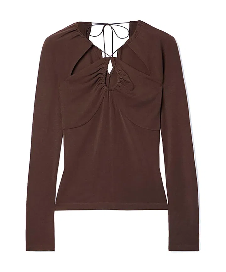 来自伦敦的可持续性时尚品牌Ninety Percent,该上衣运用TENCEL™ Lyocell弹力材质,锁骨下方采用几何cut-out设计,颈部灵活的抽绳设计可调整松紧,穿起来简约又性感。