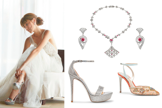 最意想不到的是陈凯琳的婚鞋,不是Jimmy Choo也不是Christian Louboutin,而是拥有90年历史的意大利鞋履品牌Rene Caovilla。从婚礼前一日拍摄婚纱照、中午的敬茶仪式到户外婚礼,她一连穿上3双Rene Caovilla高跟鞋,迈向幸福的婚姻。