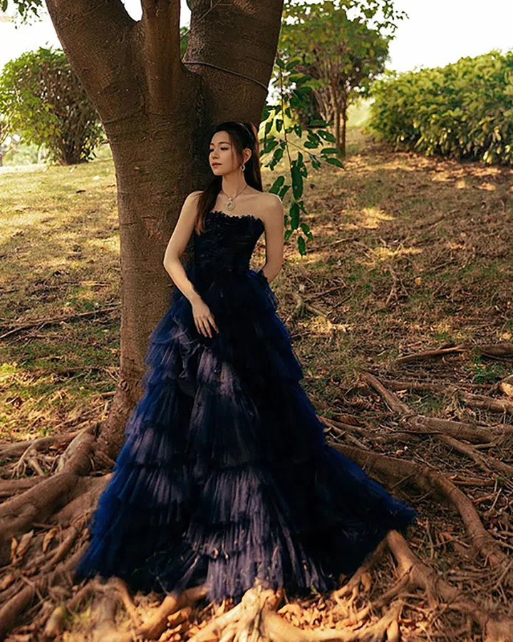 升格当妈妈的陈妍希还是那么美!这次她选择了设计师品牌Jason Wu的深蓝色礼服亮相典礼,展现典雅又复古的风格~