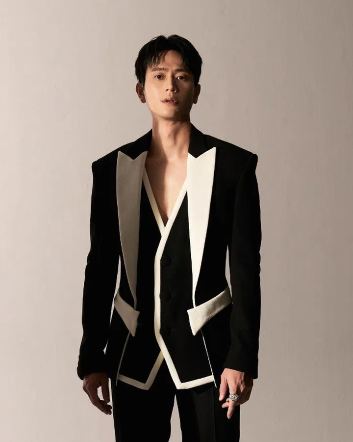 一改平日保守造型的刘冠廷,穿上Balmain 2023秋冬系列的撞色拼接西装,V领的设计性感露出胸肌。谁说西装造型=无聊?刘冠廷手腕上的Cartier Ballon Bleu腕表,和手指上的Panther Skeleton Ring可是实打实的吸睛!