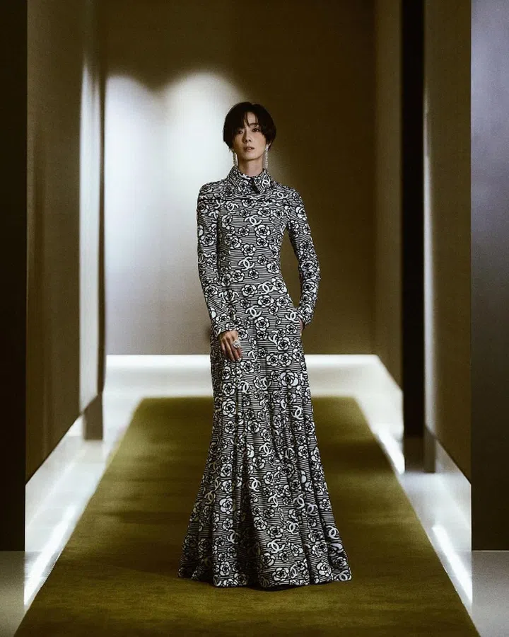 出道多年的金马影后桂纶镁以Disney+剧集《台北女子图鉴》首次出战金钟!影后的战袍可大有来头:这条布满了山茶花图案的丝绒长裙,可是出自Chanel 2023/2024秋冬高级时装系列,再配上同品牌的钻石流苏耳环,衬托出桂纶镁的气质和典雅~