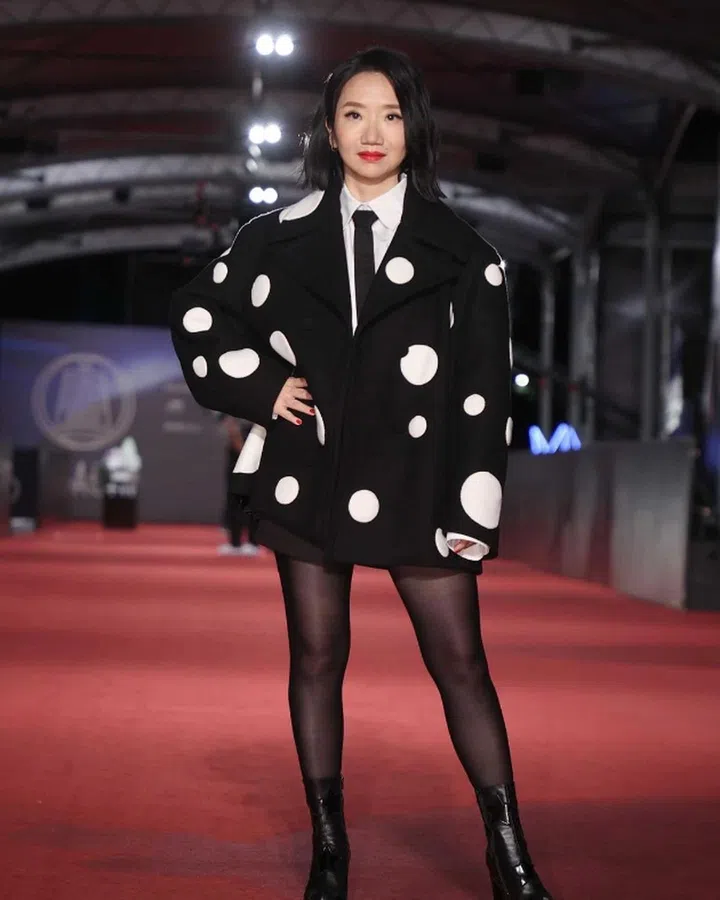 礼服绝对是女星们走红毯的首选,台湾名嘴陶晶莹反其道而行,穿着Valentino的黑色波点外套内搭白色衬衫和黑色领带,展现帅气一面让人十分惊喜!