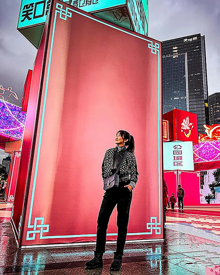 白薇秀今年和戚玉武一同回其家乡广州过新年,并和戚玉武家人连线《龙宝献瑞贺新春》晚会在线拜年。她穿着一身帅气的Louis Vuitton夹克和戚玉武逛花市,感受中国浓浓的新年气氛。