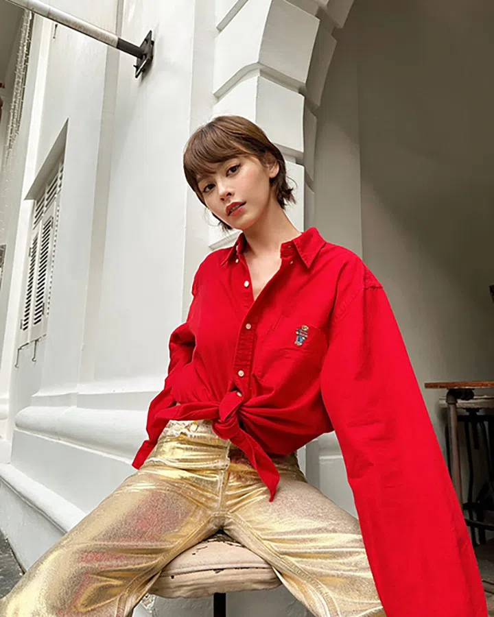 Mr&Mrs Teo的红色新年造型,以简约的红色T-shirt搭配牛仔裤,造型随性又时尚。以超甜couple look迎接两人新婚后的第一个农历新年。