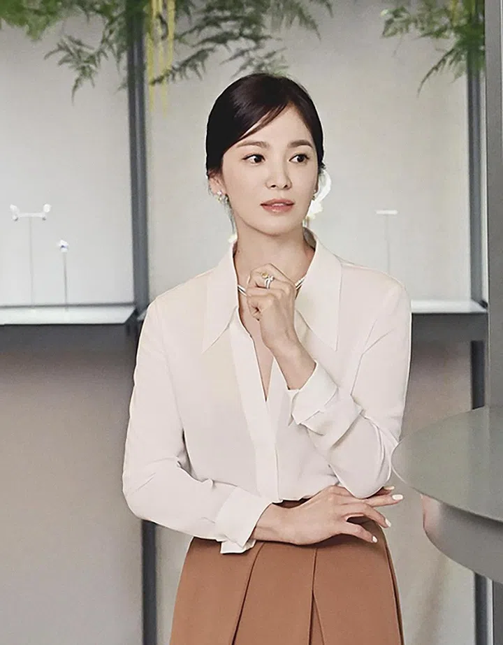 再不然,学宋慧乔用棕色系下装搭配一款白衬衣,或者再添加一件灰色调的背心或外套等也可。怎么样,是不是很好驾驭?