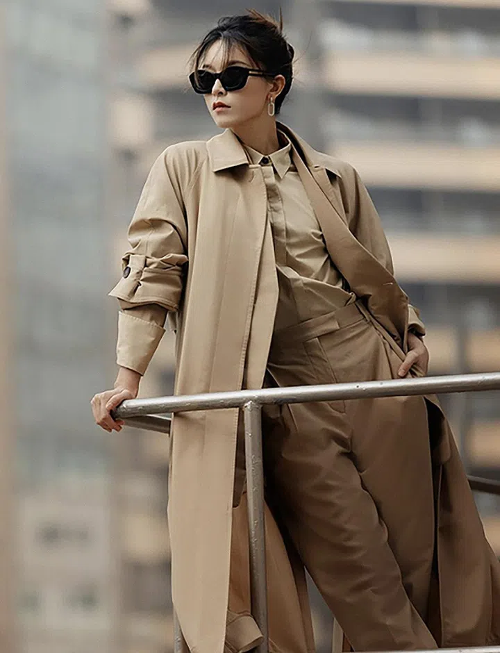 其中一种简单的“美拉德”穿搭法,就是先选择一款棕色服装,如裤装、上衣、风衣,然后再叠搭同色系单品,这就是一身随性又典雅的“美拉德”造型了。