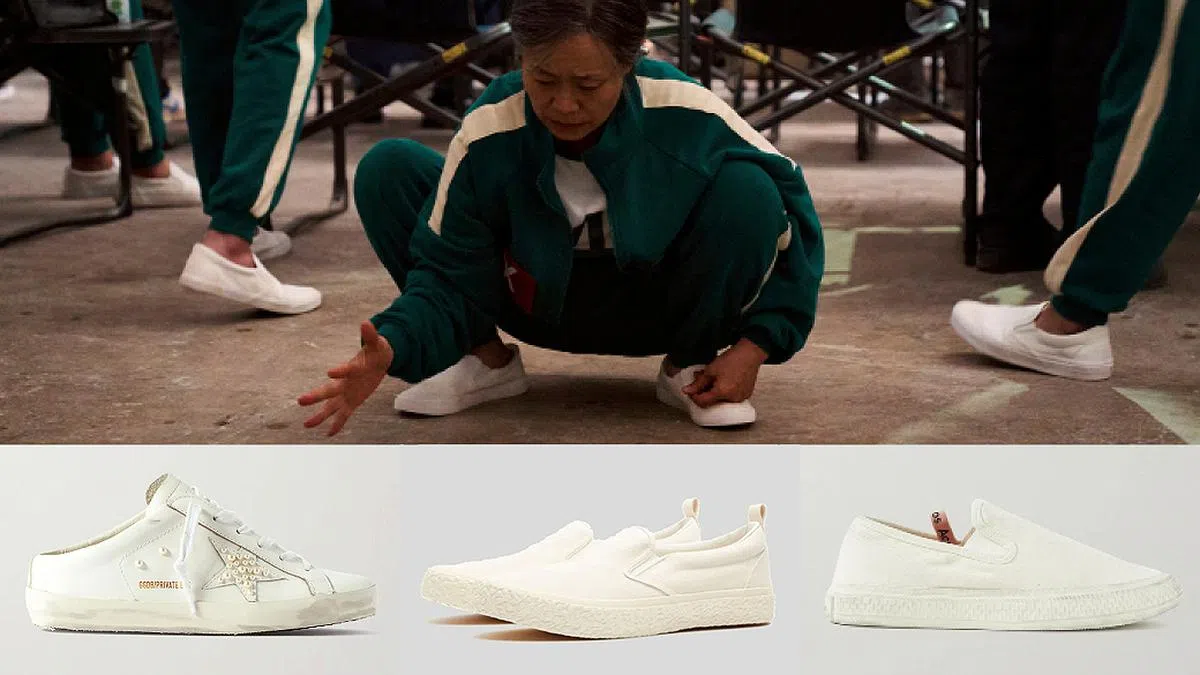 Netflix热播的《鱿鱼游戏》剧中的白鞋爆红(图:Netflix和各品牌提供)