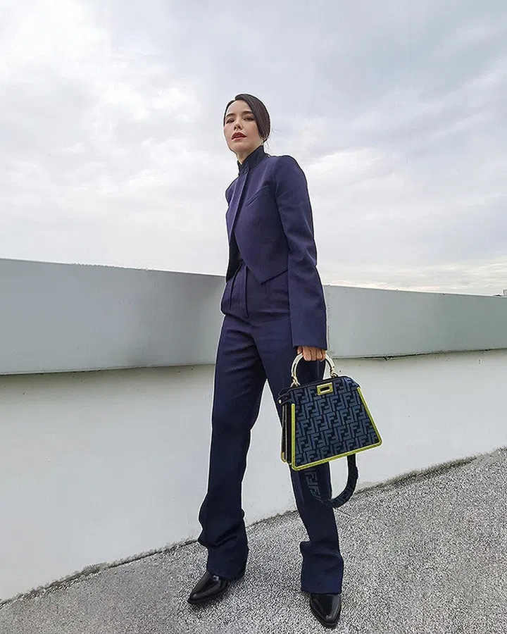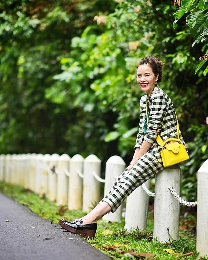 阿姐平日在生活里敢敢玩色,随时随地都是视线的焦点。学她以简约上衣搭配亮色Peekaboo包包,再以彩色下装和鞋履展现个性活力。