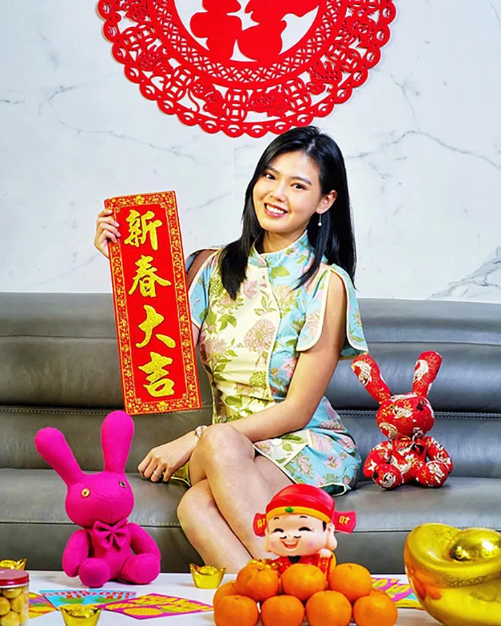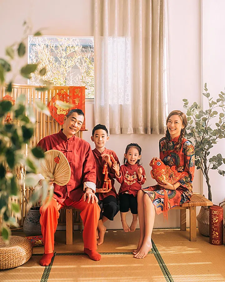 陈楚寰新年也敢敢玩色,并与家人约好一人一个颜色一起穿旗袍,一起拍照喜庆又欢乐。下次过年,你也不妨和家人、朋友一起约好集体穿旗袍,为农历新年留下美好纪念。